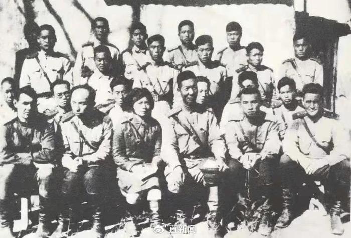 1943年10月,抗联领导人(苏军第八十八独立步兵旅旅长)周保中(前排左四)、政治委员李兆麟(前排左二)、一营营长金日成(前排右二)同部分抗联将士合影。